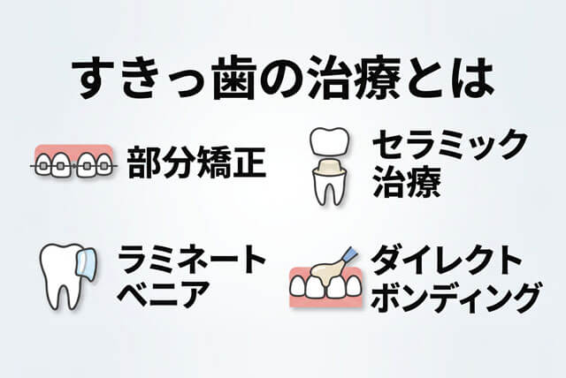 すきっ歯治療には大きく分けて次のような選択肢があります。